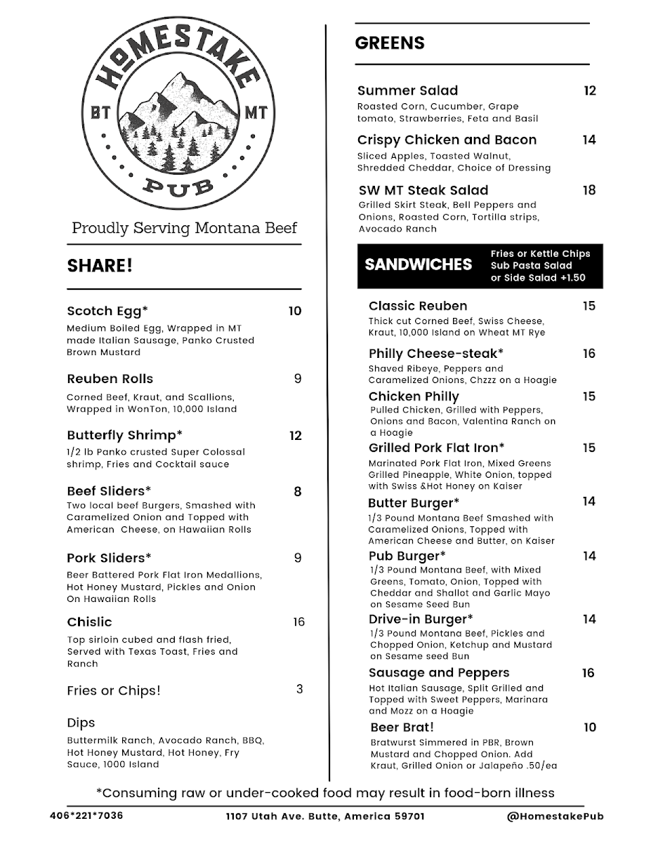 Welcome to Homestake Pub, a hidden gem nestled in Butte, Montana. Situated at 1107 Utah Ave, this cozy pub blends unfussy charm with a menu that tantalizes the palate. From Mediterranean-style rotini pasta salad to signature Jacq's Panko Shrimpies, the starter options are a delightful introduction to their culinary offerings.